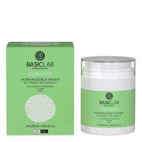 BasicLab Normalizująca maska do twarzy, szyi i dekoltu, 10% Fermentu ryżowego, 2% BHA, CICA, Zwężenie i redukcja, 50 ml