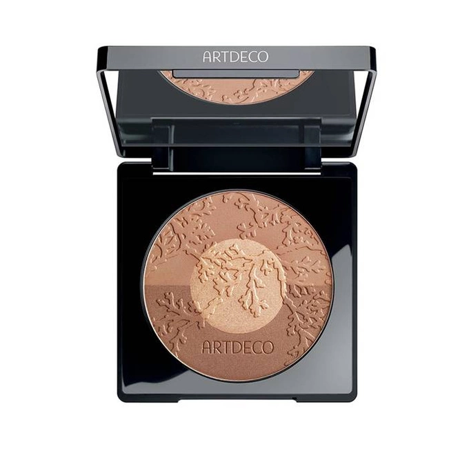 Piękny bronzer z rozświetlaczem, zawsze kupuje wersje limitowane Artdeco ze względu na opakowanie, wielkość, a przede wszystkim na jakość produktu, który praktycznie nigdy się nie kończy.Duże lusterko jest dodatkowym atutem.Przy umiejętnej aplikacji produktu można wykonać nim praktycznie cały makijaż, z tym że jest to makijaż z delikatnym błyskiem.Z tej serii mam również róż, który jest idealnym dopełnieniem.