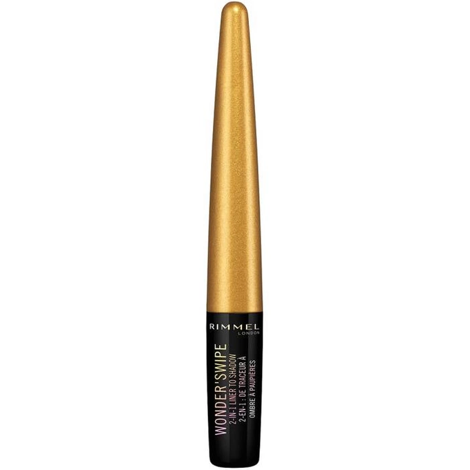 Teatralny, trwały efekt dzięki eyelinerowi i cieniowi do powiek 2 w 1 Wonder'swipe w odcieniu Instafamous od Rimmel! Nowa odsłona makijażu oka dzięki przełomowej formule 2 w 1. Zmień odważny metaliczny eyeliner w połyskujący cień do powiek zaledwie jednym pociągnięciem palca. Ten łatwy do rozcierania eyeliner i cień w płynie to wielozadaniowe cudo. Nakładaj kolorowy kosmetyk na powiekę jak zwykły eyeliner w płynie. Aby uzyskać połyskliwy cień, rozprowadź go pędzelkiem lub palcem, dopóki jest wilgotny. Wykonaj odważny i modny makijaż oczu za pomocą jednego produktu. Magia dzieje się na Twoich oczach!