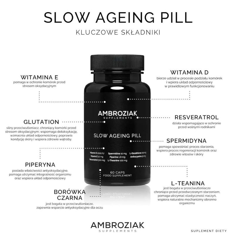 Dr Ambroziak Slow Ageing Pill Suplement diety spowalniający procesy starzenia, 60 kaps.