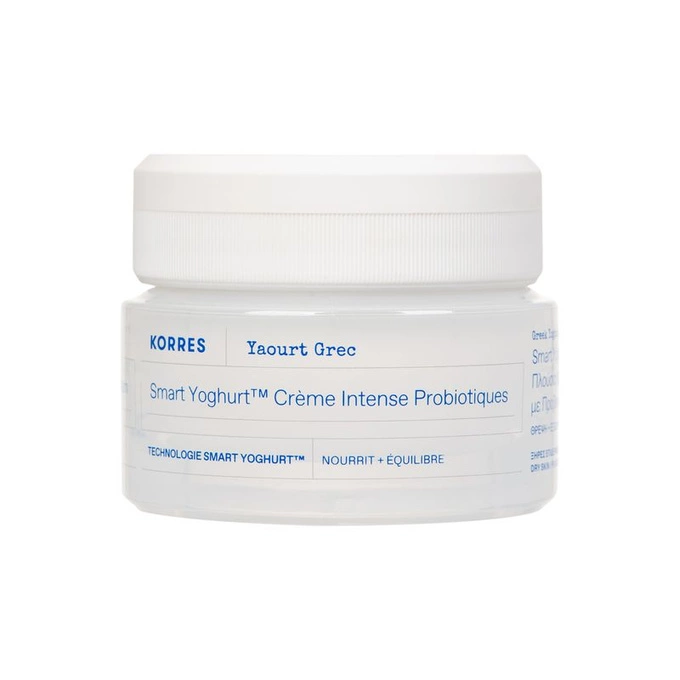 Technologia SMART YOGHURT™ - Nowoczesny kompleks opracowany przez KORRES, zawierający prawdziwy jogurt grecki w połączeniu z ekstraktami pre- i probiotycznymi; mlekiem owsianym, składnikami odżywczymi z alg morskich, został zaprojektowany tak, aby dostosowywał się do zróżnicowanych potrzeb skóry.