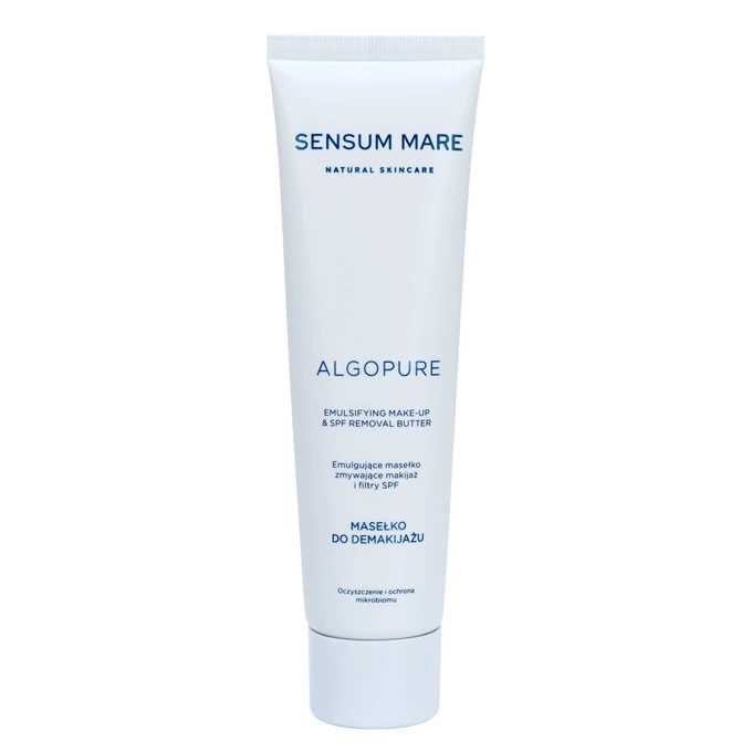 Masełko do demakijażu z linii ALGOPURE skutecznie usuwa makijaż oraz produkty z filtrami SPF, jednocześnie chroniąc mikrobiom skóry. Idealne do pierwszego etapu oczyszczania skóry.Zawartość 13 wyselekcjonowanych składników aktywnych sprawia, że już podczas pierwszego etapu oczyszczania, masełko dba o kondycję mikrobiomu skóry, co potwierdza przyznany certyfikat SAFE MICROBIOME®. Naturalne oleje pozostawiają skórę miękką i gładką, a botaniczny kompleks z alg morskich oraz ekstrakt z lawendy morskiej działają nawilżająco i przyczyniają się do łagodzenia podrażnień. Formuła masełka jest delikatna dla oczu, nie powoduje ich podrażnia oraz nie pozostawia uczucia zamglenia.