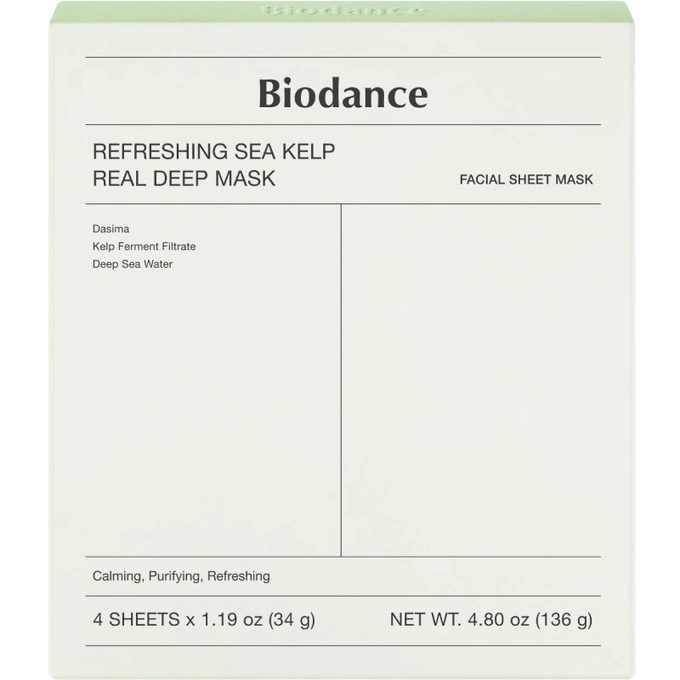 Biodance Refreshing Sea Kelp Real Deep Mask (4 sztuki) to maska, która koi i ujednolica cerę, pomagając przywrócić jej równowagę hydrolipidową. Jest szczególnie polecana skórze tłustej i skłonnej do trądziku.