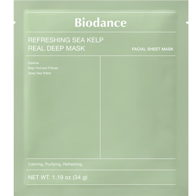 Biodance Refreshing Sea Kelp Real Deep Mask (1 sztuka) to maska, która koi i ujednolica cerę, pomagając przywrócić jej równowagę hydrolipidową. Jest szczególnie polecana skórze tłustej i skłonnej do trądziku.