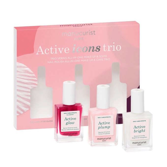"Active Icons Trio" to zestaw stworzony z myślą o pielęgnacji i natychmiastowej poprawie wyglądu naturalnej płytki paznokcia. Produkty z linii Active działają jak odżywcze kuracje z efektem makijażu – "Twoje paznokcie, tylko lepsze"