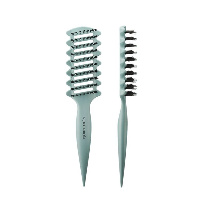 Björn Axén Szczotka do włosów kręconych – podkreślenie naturalnych loków i fal. Björn Axén Szczotka do włosów kręconych to profesjonalne narzędzie stworzone z myślą o pielęgnacji i stylizacji loków i fal. Wyposażona w miękkie włosie oraz specjalnie zaprojektowane krawędzie, szczotka delikatnie rozdziela pasma, podkreślając naturalny skręt i nadając włosom sprężystość oraz blask. Dzięki swojej konstrukcji doskonale zapobiega puszeniu się włosów i pozwala na ich rozczesywanie bez szarpania, co czyni ją idealnym wyborem do codziennej pielęgnacji kręconych kosmyków. Regularne stosowanie szczotki Björn Axén pomaga utrzymać loki w doskonałej kondycji, zapewniając im miękkość, gładkość i wyrazisty kształt.