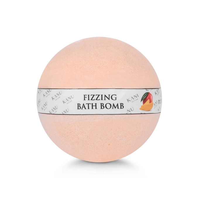 - Ręcznie formowana, musująca kula do kąpieli o zapachu mango
