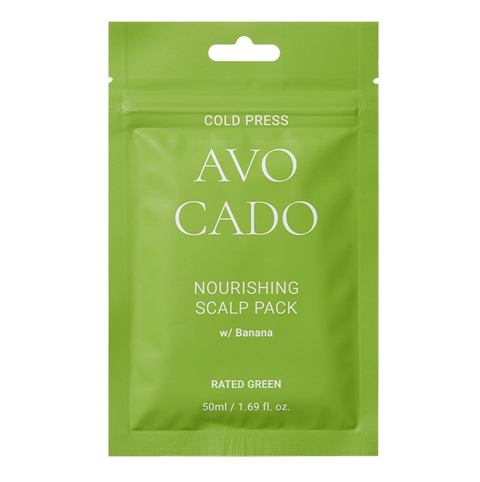 Rated Green Cold Press Avocado Nourishing Scalp Pack with Banana – Odżywcza kuracja do zmęczonej skóry głowy z awokado i bananem, 50 ml