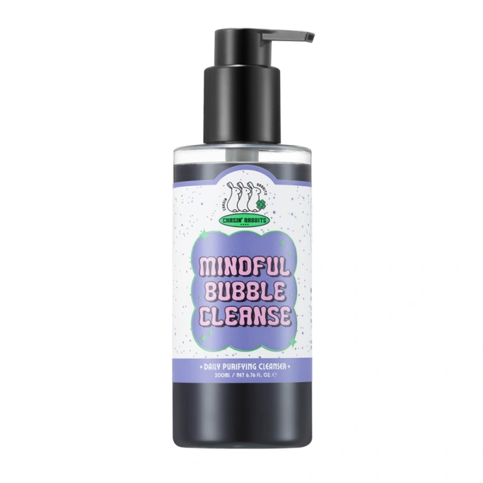 Chasin' Rabbits Mindful Bubble Cleanse to rewolucyjny produkt oczyszczający, który wykorzystuje potęgę najwyższej jakości koreańskiego węgla aktywnego, by zapewnić Twojej skórze dogłębny detoks i rewitalizację. Dzięki unikalnej formule, żel penetruje pory, redukując nadmiar sebum i zanieczyszczenia, a w kontakcie z wodą tworzy luksusową, puszystą pianę. Produkt został stworzony w duchu zrównoważonego rozwoju – od wegańskiego składu po ekologiczne opakowanie z bioplastiku, które teraz posiada wygodną pompkę.